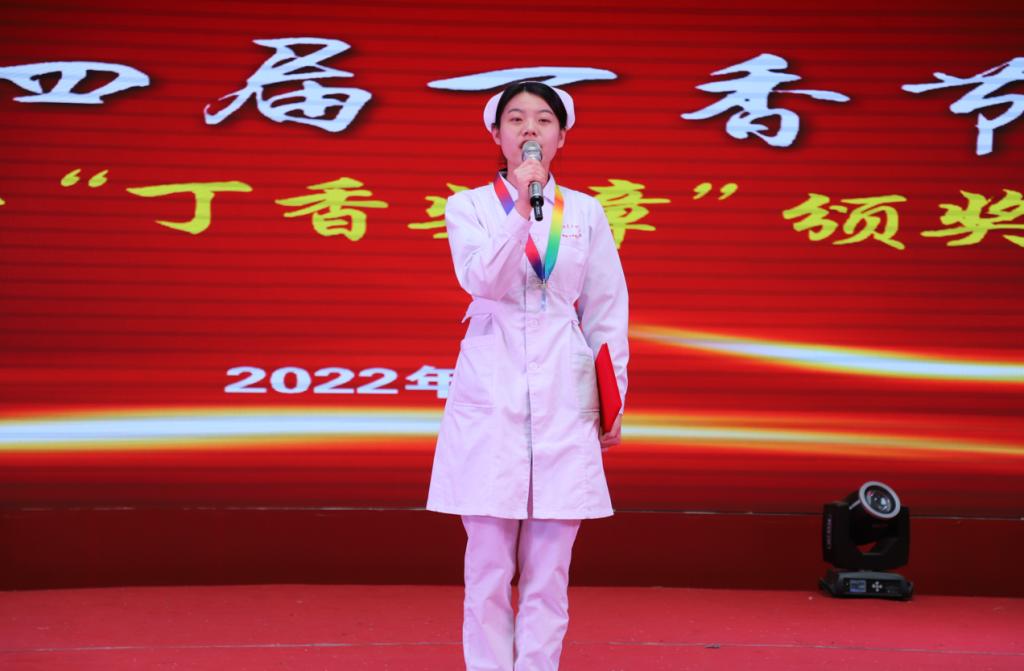 丁香奖章获得者、健康与护理系护理学191班刘柏岑同学播放了《“疫”情路上最美的青春》志愿服务微视频后说到:“丁香奖章是肯定,更是激励,将不忘初心,牢记公益服务使命。”