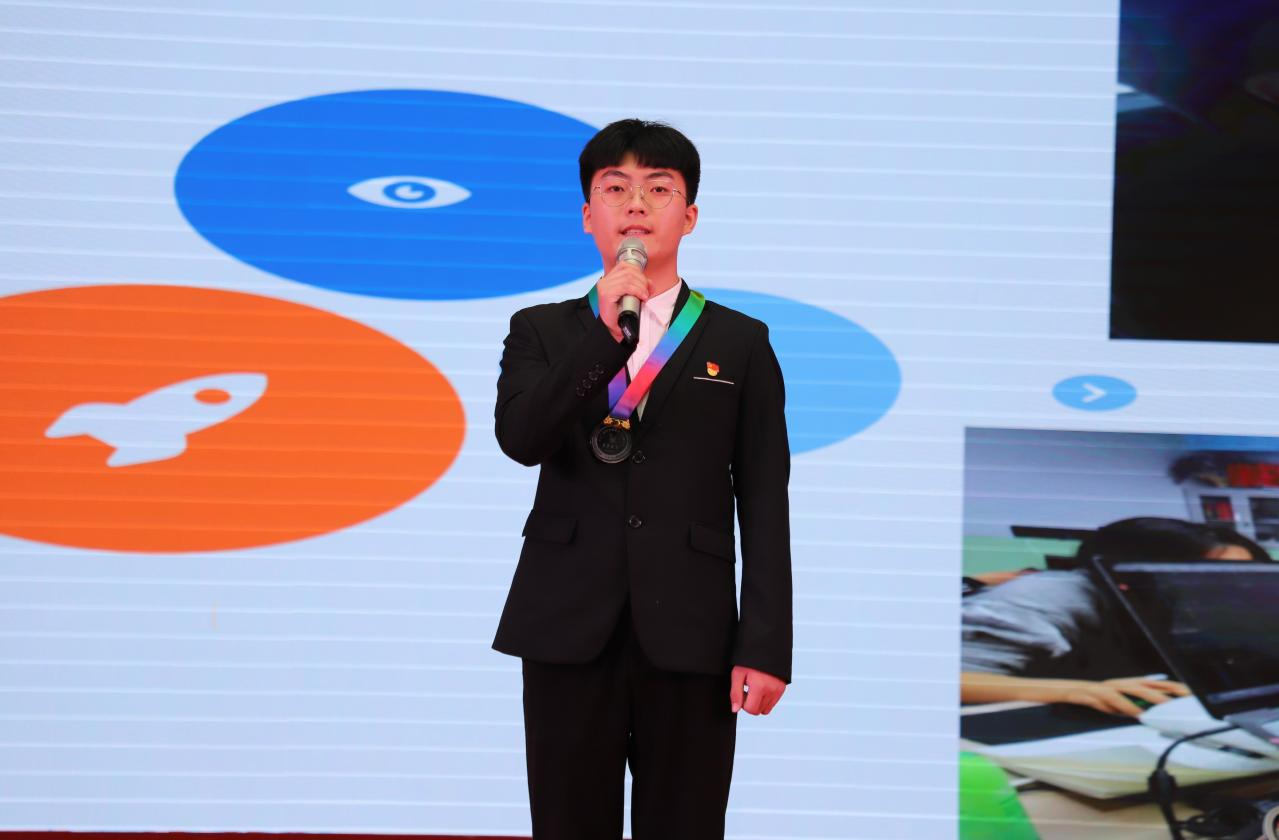丁香奖章获得者、管理工程系电商191刘文祥同学用PPT展示了自己的科研经历和成果,表示将潜心科研,励志成才。