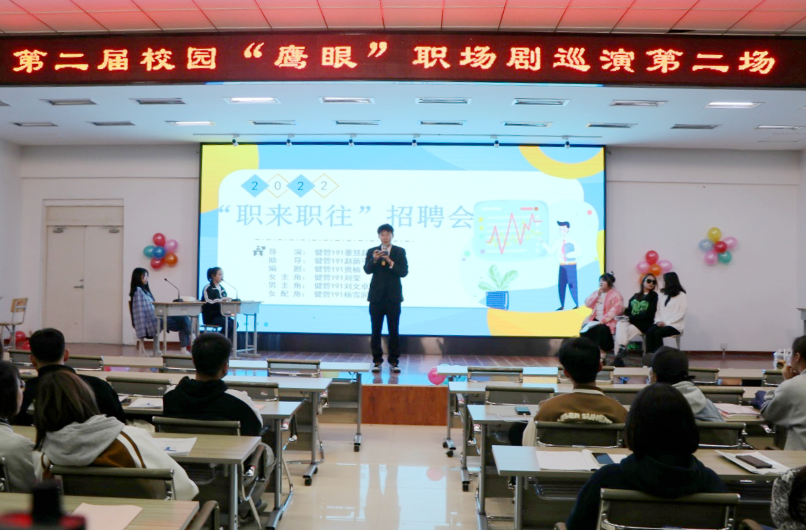 为了丰富学生课余生活,提高学生职业素养和能力,近日,学生发展中心主办、大学生职业发展协会承办的第二届“校园鹰眼职场剧大赛”决赛在二号教学区2508会议室举行。