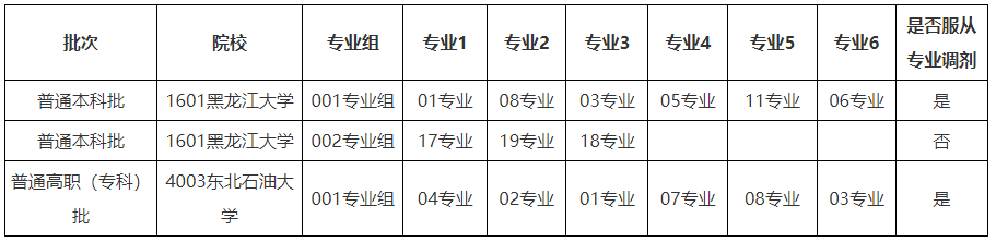 ⑤省内公安院校(实行平行志愿,设5个院校专业组志愿):黑龙江公安警官职业学院;